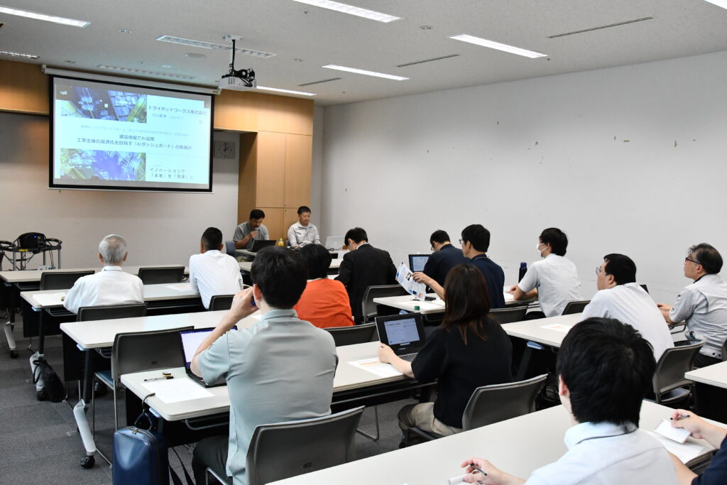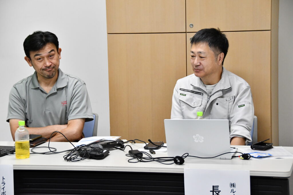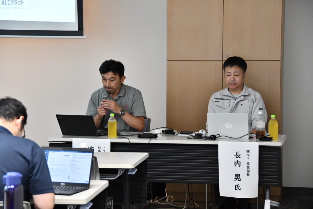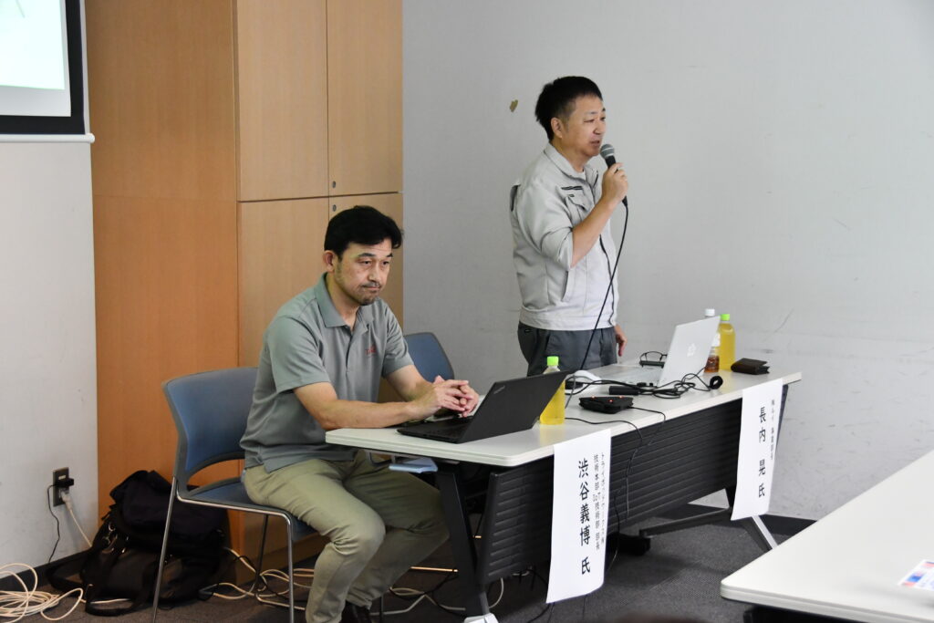 一人目は株式会社トライポッドワークスの渋谷義博様に【AIダッシュボード】とキーワードに説明いただきました。「タイムラプス」機能により長時間の工事現場の動画を1分程度にする様子を動画で見せていただきました。また解析ツールを活用して動画を要素に分けて解析するというソリューションのご紹介をいただきました。